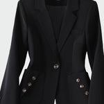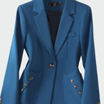 Kurtka o kobiecym kroju, która wyróżnia się eleganckimi detalami. Pojedynczy guzik z przodu nadaje minimalistycznej elegancji, podczas gdy dekoracyjne guziki na kieszeniach dodają nowoczesnego akcentu. Idealna zarówno na spotkania zawodowe, jak i na wieczorne wyjścia w stylu.