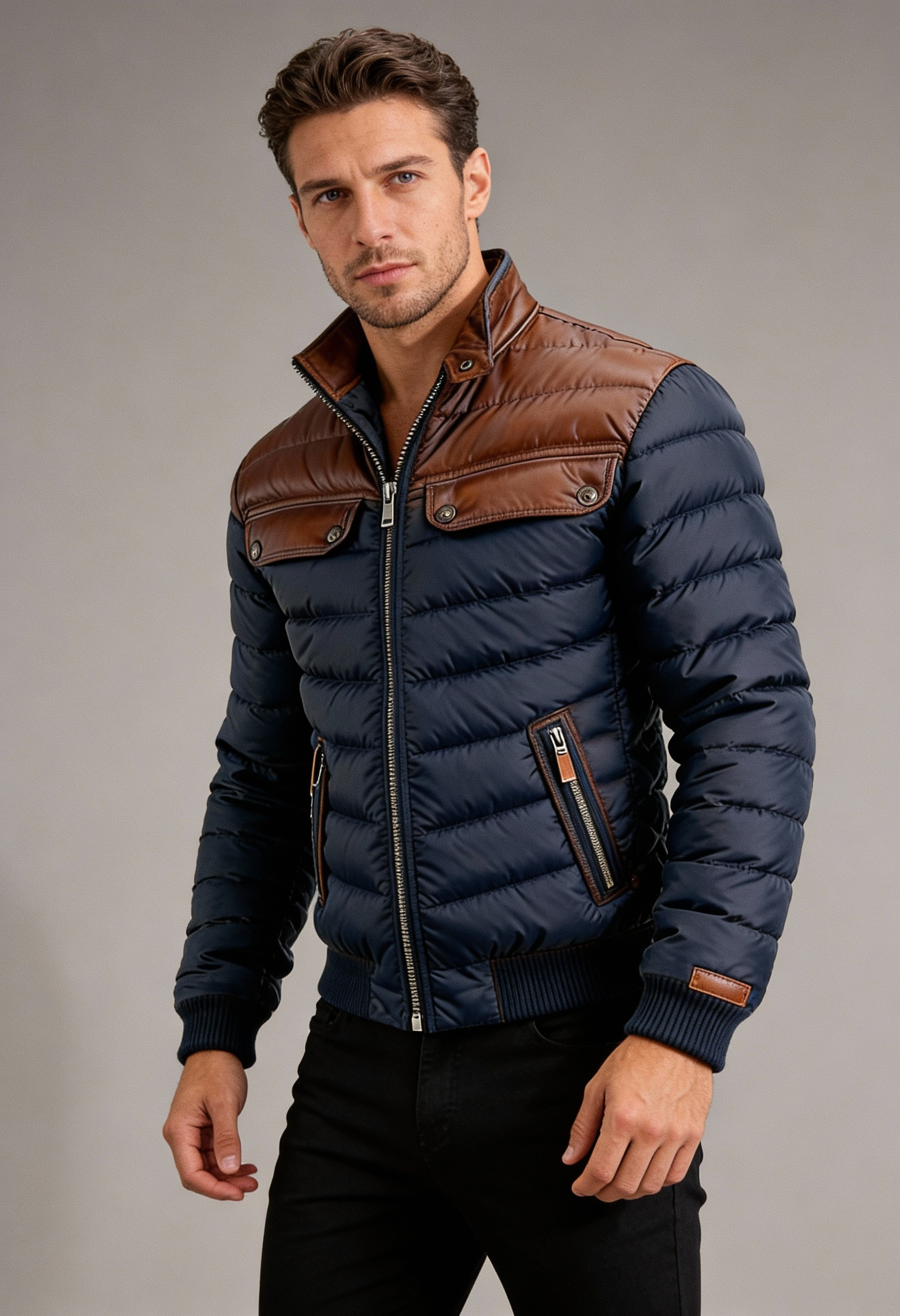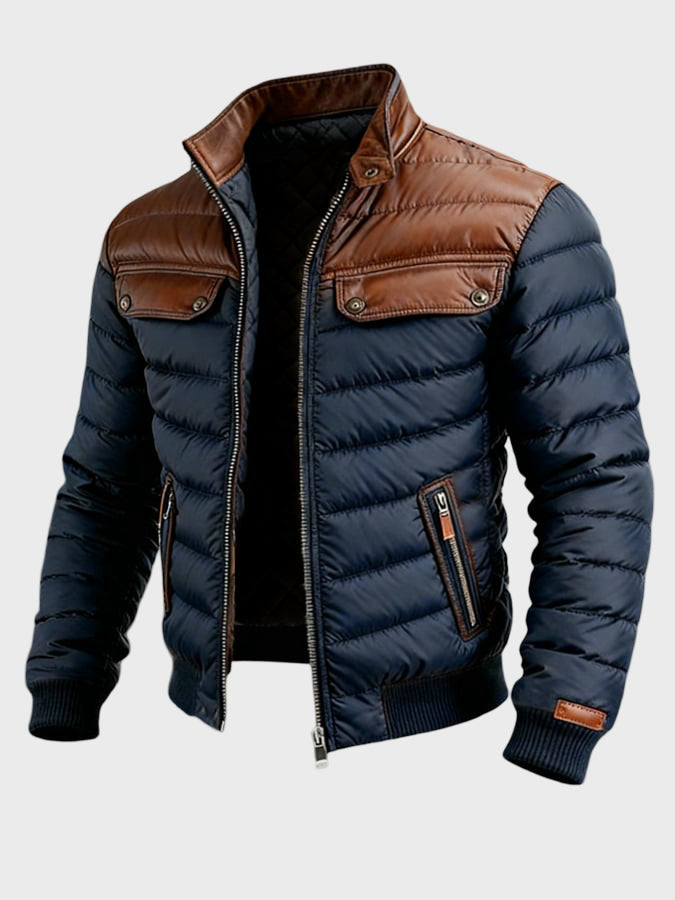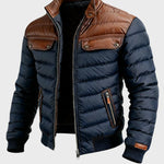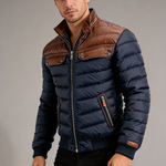 Aleksander - kurtka quilted granatowa z skórzanymi wstawkami