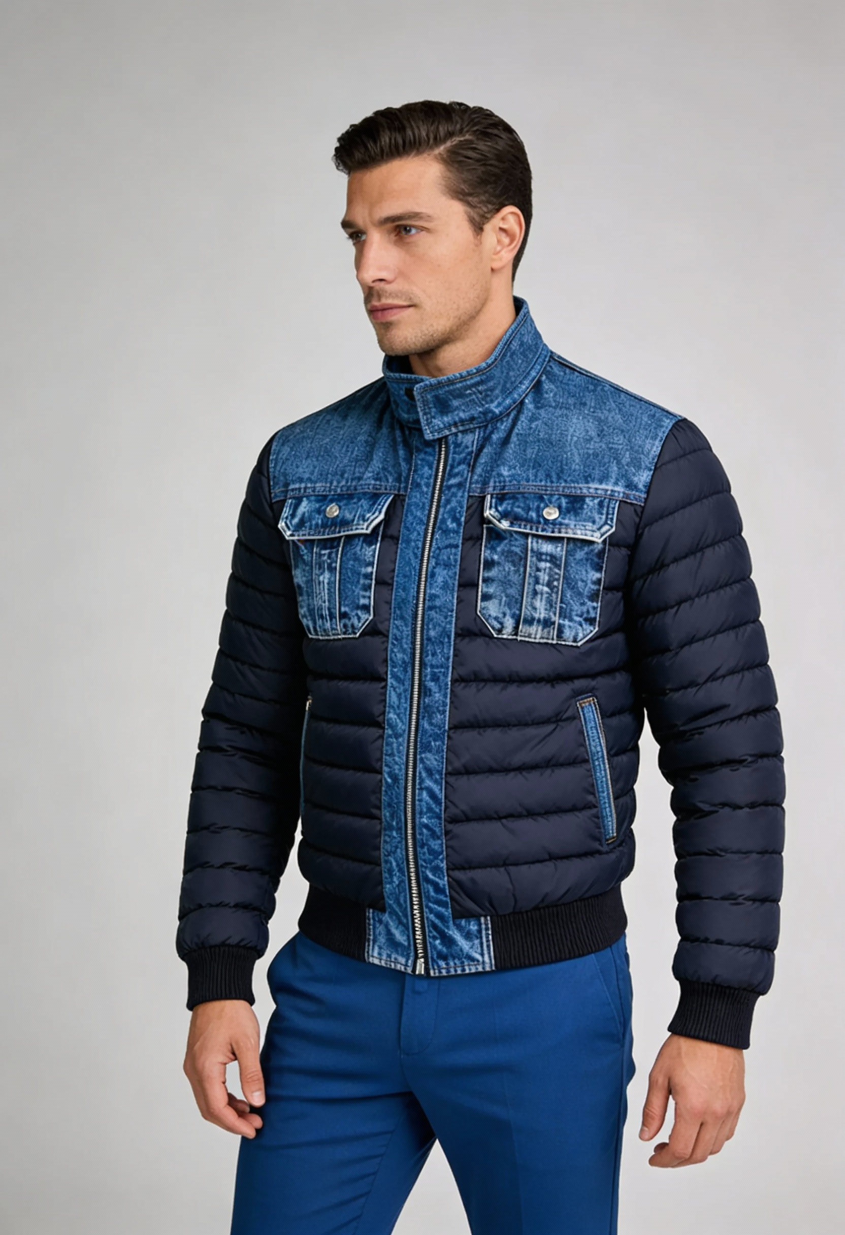 PATRYK™ | KURTKA QUILTOWANA Z WYSZUKANYMI SZCZEGÓŁAMI DENIM łączy w sobie kontrolowane ciepło i wyrazisty styl bez kompromisów.