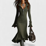 Elegancka sukienka Laura została zaprojektowana, aby podkreślić sylwetkę z nutą ponadczasowej klasy. Wykonana z miękkiego i otulającego materiału, harmonijnie podąża za liniami ciała, oferując komfort i styl w jednym elemencie. Projekt z zamkiem błyskawicznym z przodu i lekko rozszerzanym dołem nadaje ruch i wyrafinowany wygląd, idealny na każdą okazję — od dnia do wieczora.