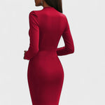 Sukienka Melany to synonim klasy i wyrafinowania. Dzięki swojemu midi krojowi i głębokiemu dekoltowi w kształcie litery V, podkreśla sylwetkę w sposób wyrafinowany i kuszący. Wykonana z elastycznej i miękkiej tkaniny, oferuje wygodne dopasowanie, które podąża za liniami ciała bez ograniczeń. Idealna na wieczory, kolacje lub wydarzenia, na których chcesz czuć się po prostu nienagannie.