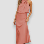 Zrób niezatarte wrażenie w sukience Carlina z satyny z dekoltem halter. Wysokiej jakości satynowy materiał delikatnie odbija światło, podczas gdy wyrafinowany dekolt halter podkreśla sylwetkę z elegancją. Luźny krój zapewnia wyrafinowany wygląd i maksymalny komfort.