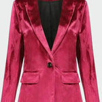 Kurtka o welurowej teksturze, która dodaje luksusu i elegancji każdemu strojowi. Jej klasyczny kołnierz w połączeniu z pojedynczym guzikiem z przodu tworzy doskonałą równowagę między ponadczasowym stylem a nowoczesnością. Idealna na wieczorne wyjścia lub specjalne okazje.
