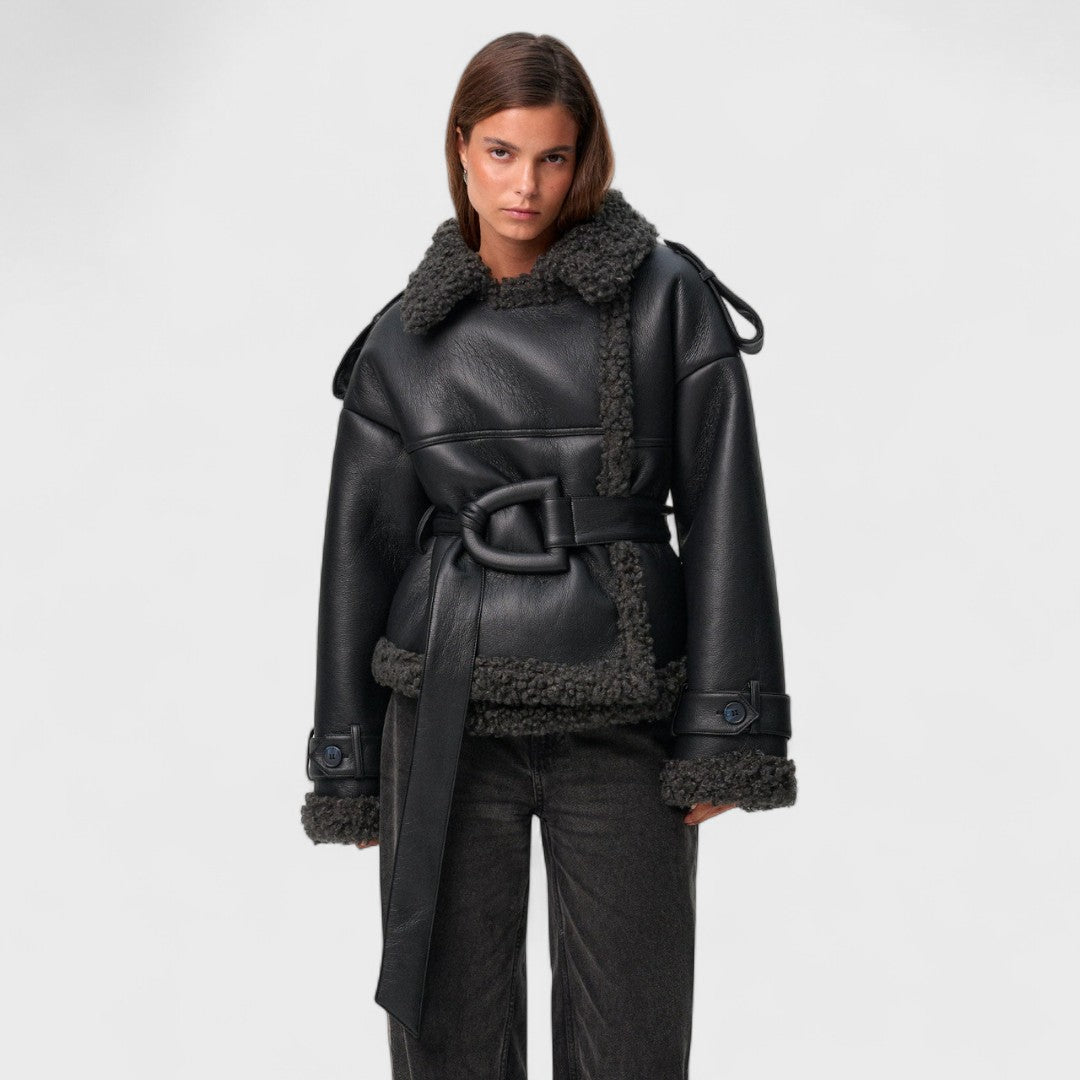 Elvira - Płaszcz z Wełny Owczej z Paskiem