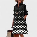 Sukienka Yvonne to punkt styku między klasyczną czernią a sztuką współczesną. Zaprojektowana, aby zrobić odważne i jednocześnie wyrafinowane wrażenie, ten element odzieży ma motyw kaskadowy, który delikatnie przechodzi w dynamiczny i nowoczesny wygląd. Niezależnie od tego, czy wybierasz się na elegancki brunch, na towarzyską imprezę, czy na otwarcie galerii, Yvonne zapewnia Ci elegancki i wyrazisty wygląd. Sukienka z wyraźnym kołnierzem nadaje ponadczasowego uroku, podczas gdy wizualny przepływ nadruku wysmukla i podkreśla sylwetkę. Wyrafinowana, ale ekspresyjna, Yvonne jest dla kobiety, która zna moc kontrastu: uroczej, pewnej siebie i całkowicie autentycznej.
