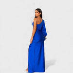 Zrób niezapomniane wejście w sukience Melyssa — sukience wieczorowej na jedno ramię, która ucieleśnia wysublimowaną elegancję. Wykonana z płynnego materiału o błyszczącym wykończeniu, doskonale układa się na ciele, tworząc miękką i wydłużoną sylwetkę. Płynny rękaw i delikatne fałdy poruszają się z gracją przy każdym kroku, podczas gdy subtelne rozcięcie po bokach dodaje odpowiedniego uroku.