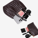 Pleciona torebka na ramię Mariana łączy miękką i luksusową teksturę z maksymalną praktycznością. Wykonana z wysokiej jakości wegańskiej skóry, ta torebka ma wszechstronny pleciony design i zawiera odpinany pasek na ramię dla łatwego transportu. Dzięki dołączonej dopasowanej kosmetyczce, utrzymuje Twoje niezbędne rzeczy w doskonałej organizacji, co czyni ją elegancką opcją zarówno na dzienne, jak i nocne wyjścia.